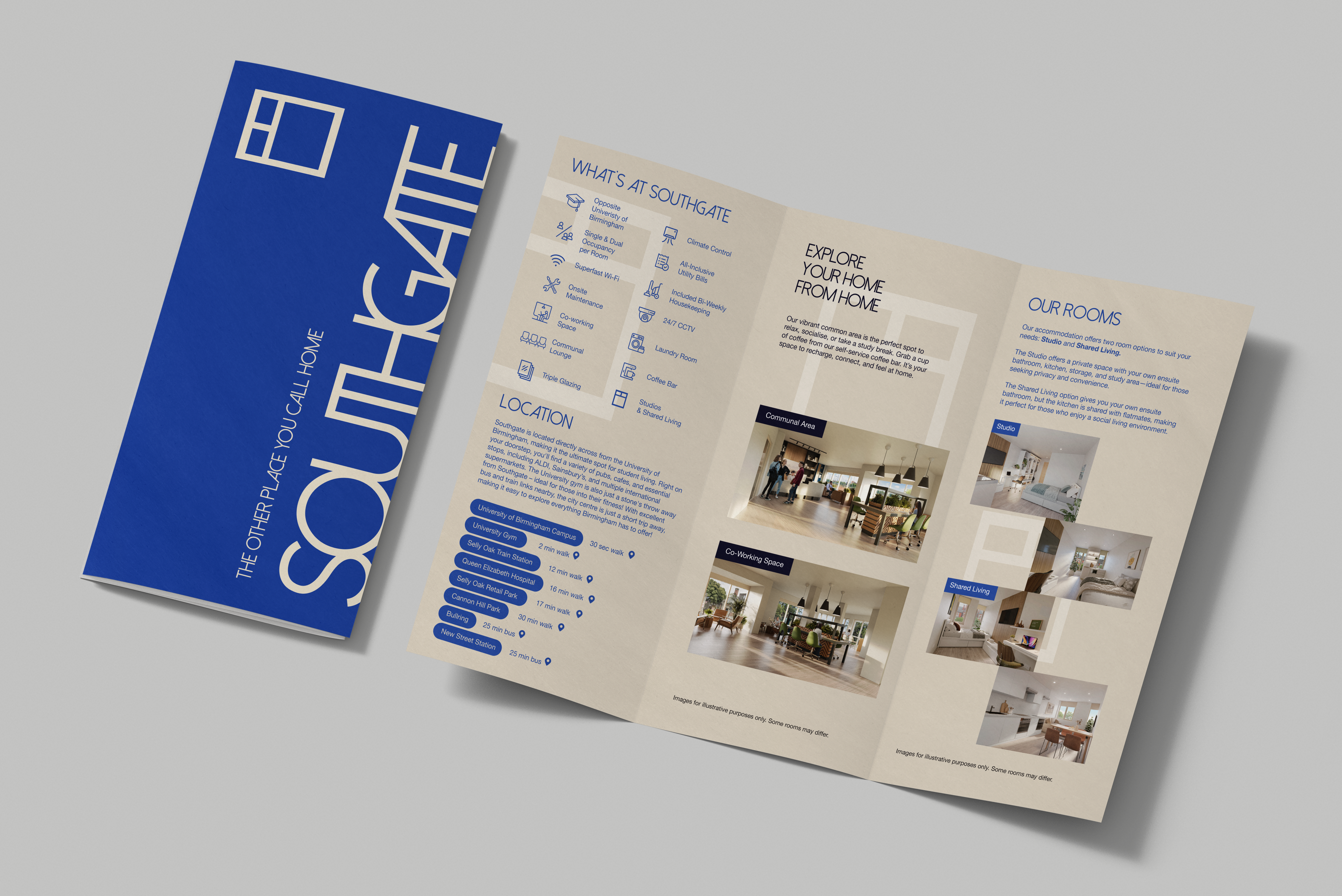 Southgate is a modern student accommodation development in Birmingham, designed for focused living and contemporary student life. We developed a complete brand identity, CGI visual language, and website to reflect the structured, forward-thinking nature of the space. Using bold typography, architectural layouts and a confident colour system, the branding brings clarity and character to the building’s wayfinding and communications. The result is a strong, cohesive visual presence that speaks directly to a new generation of students — practical, aspirational, and built for modern living.